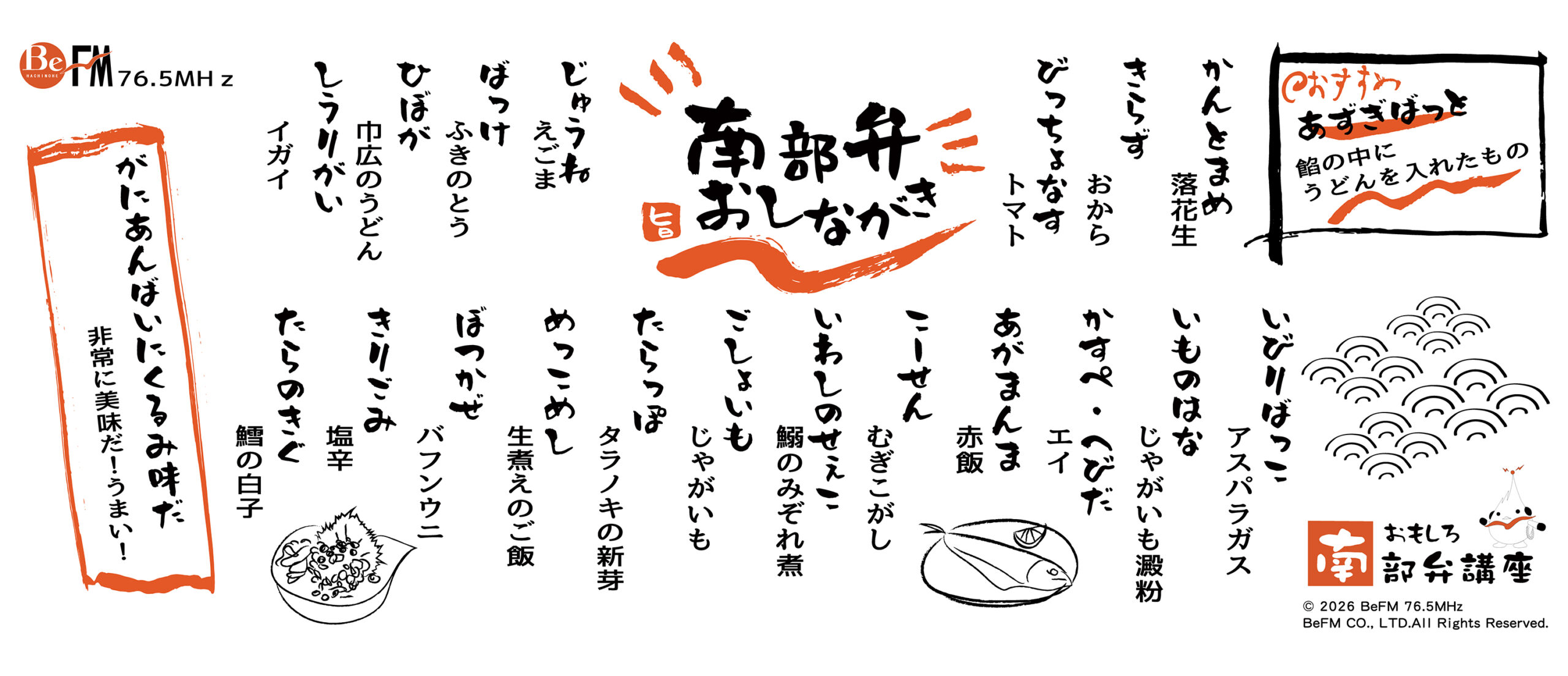 BeFMオリジナル手ぬぐい、登場! ラインナップ ここでしか手に入らない、BeFMの特別なノベルティグッズ。 中でもおすすめは、南部弁講座オ...